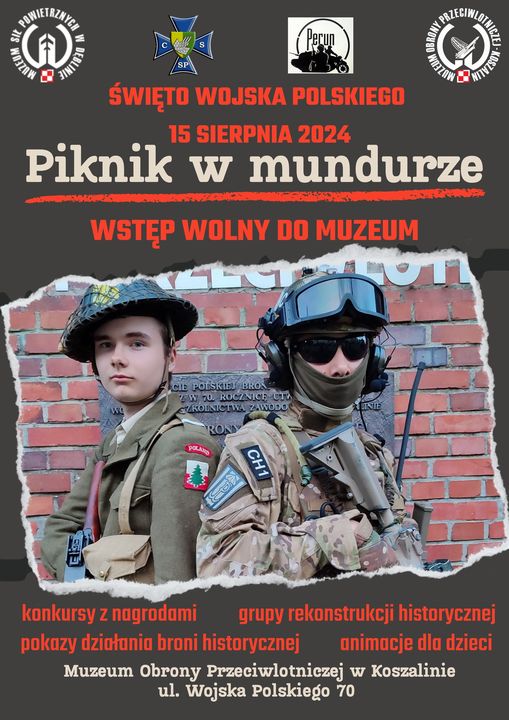 W dniu 15 sierpnia 2024 zapraszamy na kolejną edycję Pikniku w Mundurze, który odbędzie się na terenie Centrum Szkolenia Sił Powietrznych oraz Muzeum Obrony Przeciwlotniczej w godzinach 16:00 - 19:00. Wstęp wolny.