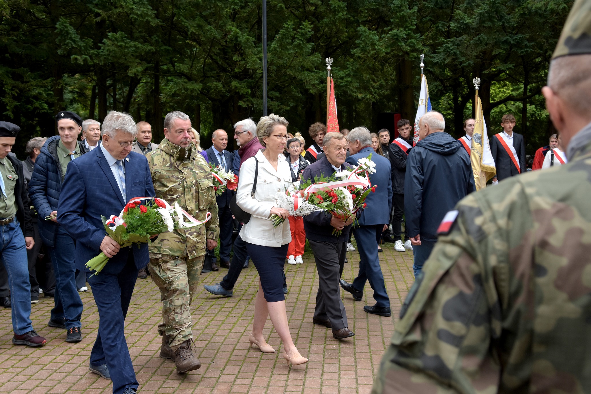 Następnie, o godzinie 10:00 wzięliśmy również w uroczystościach miejskich, które odbyły się na koszalińskim cmentarzu. Kwiaty pod pomnikiem Martyrologii Narodu Polskiego delegacja Stowarzyszenia złożyyła wspólnie z JM Rektorem Politechniki Koszalińskiem dr hab. profesorem PK panią Danutą Zawadzką.