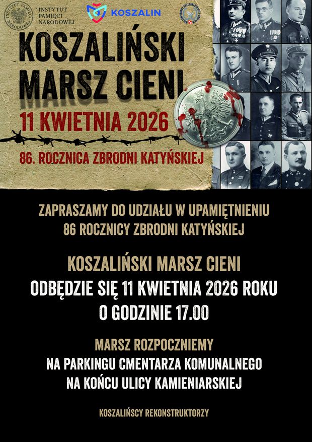Zapraszamy też mieszkańców Koszalina do wspólnego przemarszu i upamiętnienia ofiar Zbrodni Katyńskiej.
